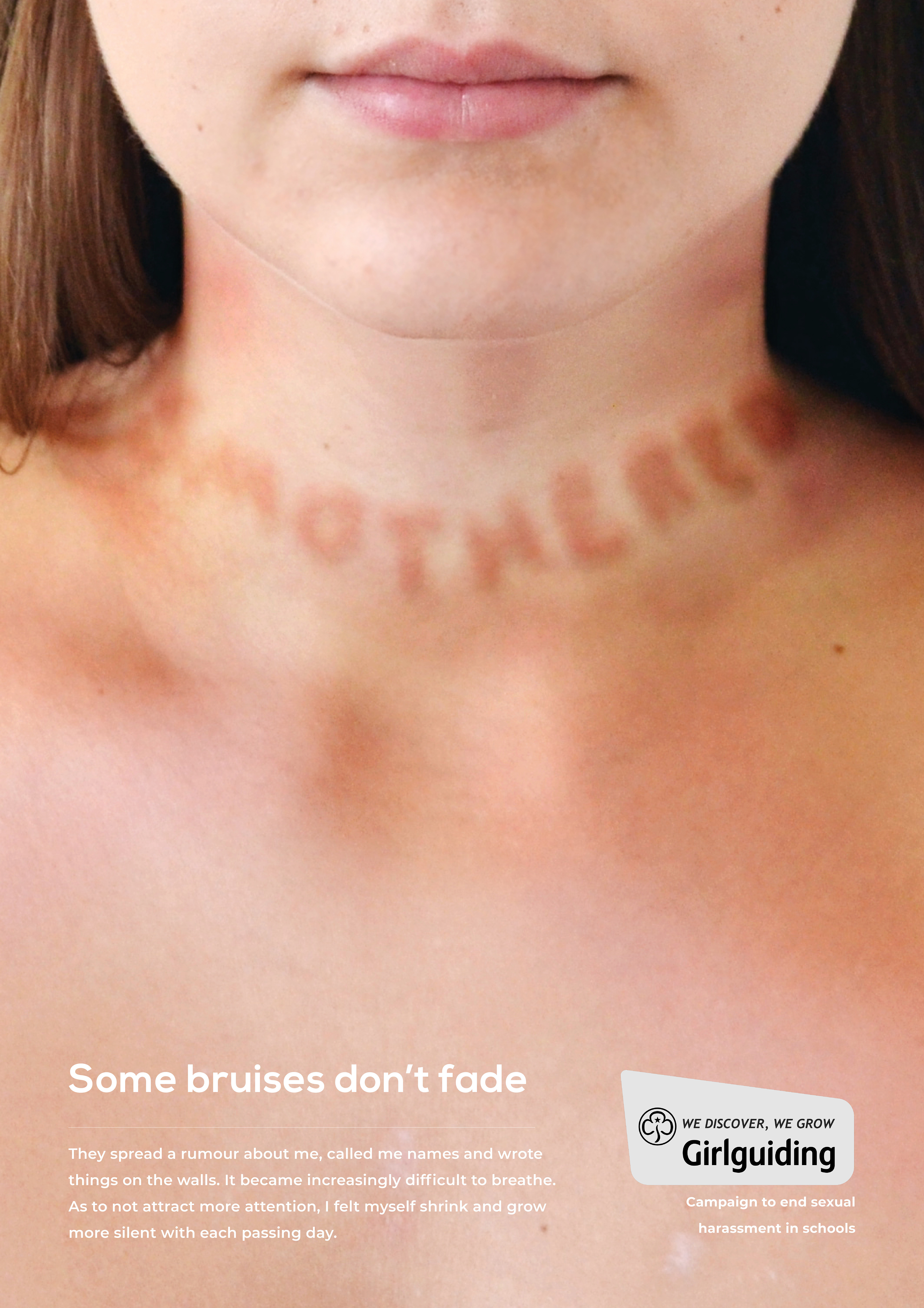 Some bruises don't fade Integrated campaign to raise awareness on sexual harassment in schools. The featured copy are real stories from girls and women.