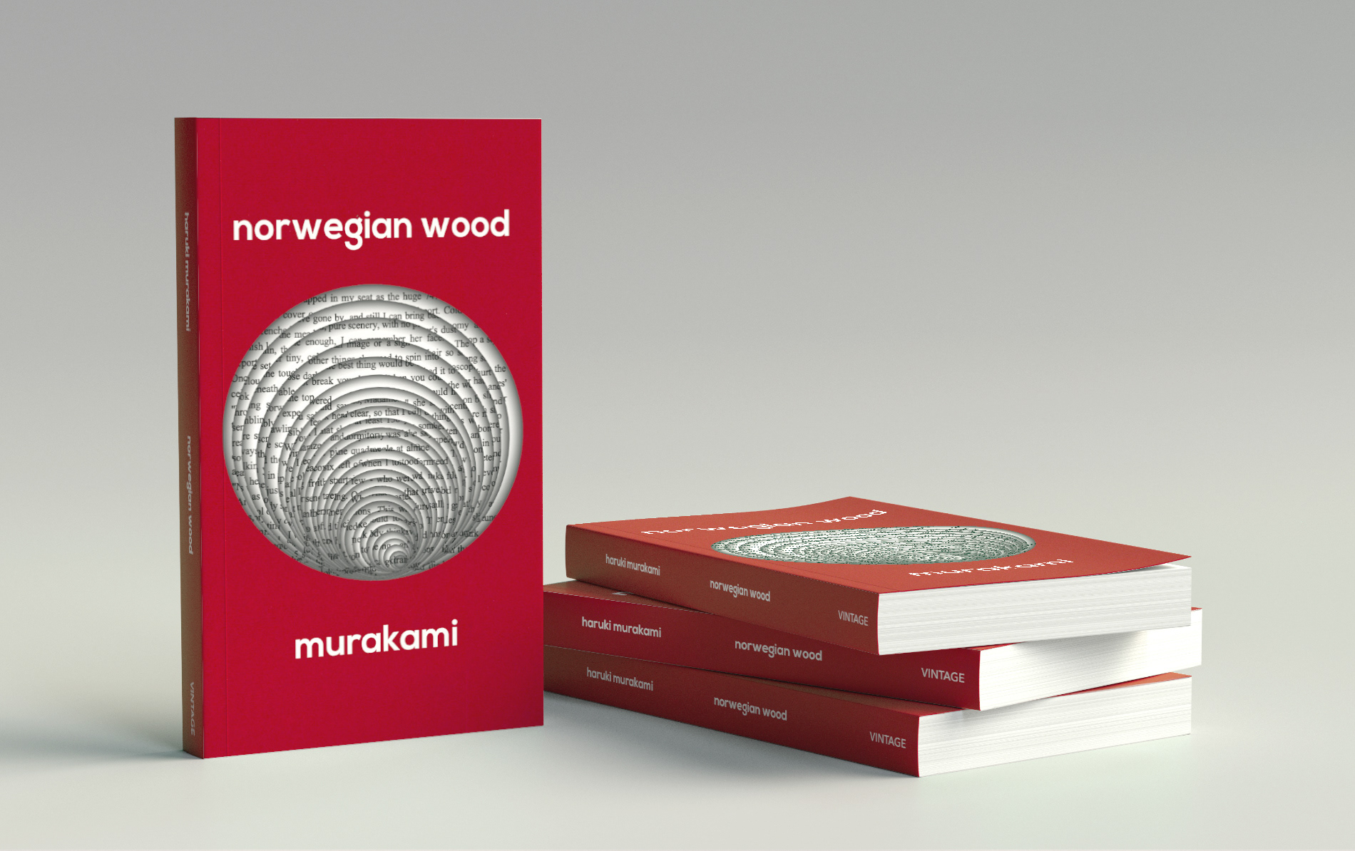 Penguin book cover brief to re-design the book cover for Norwegian Wood by Haruki Murakami. The visuals are a reference to the prologue, made to look like a well, with layers falling into infinity.
