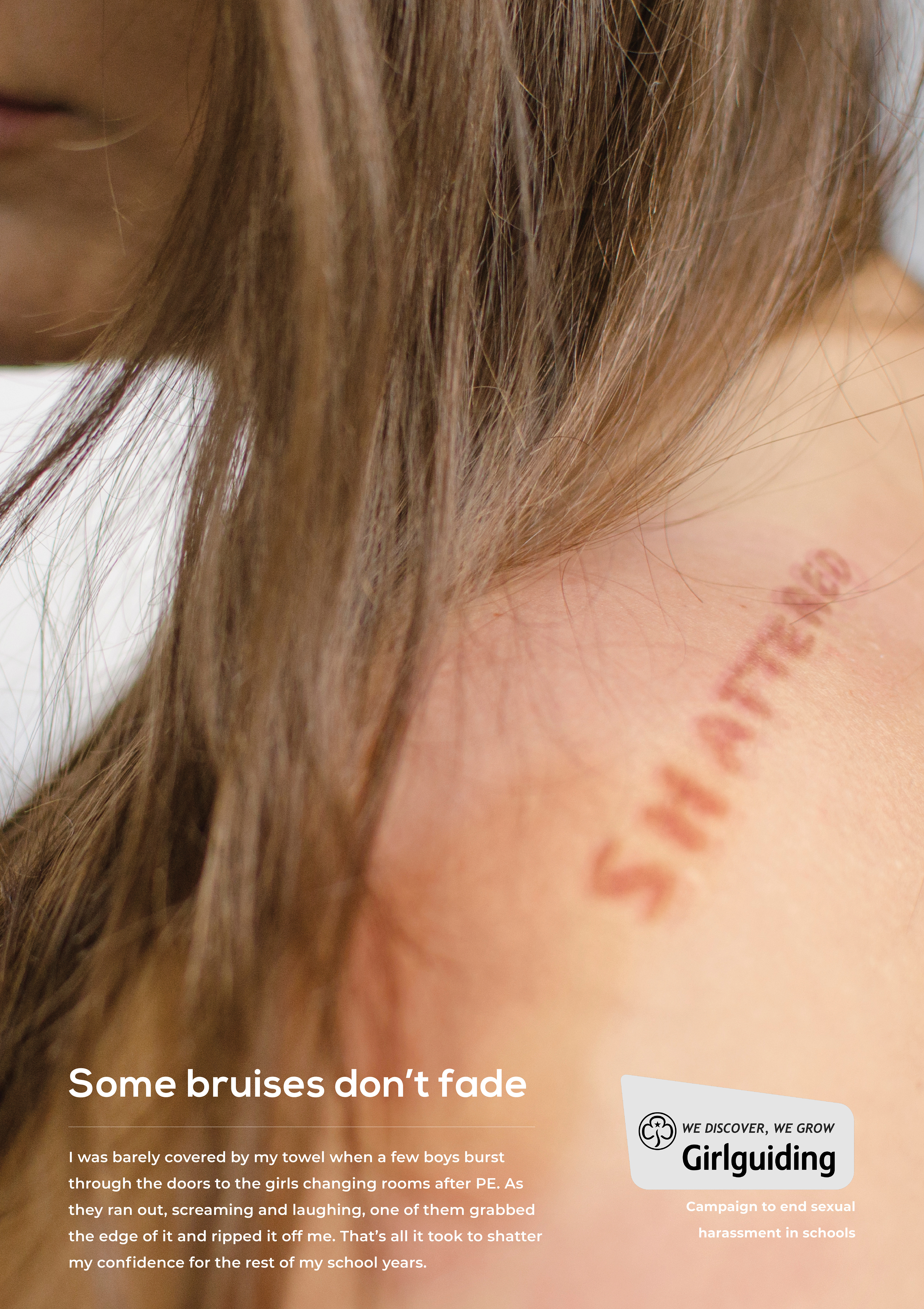 Some bruises don't fade Integrated campaign to raise awareness on sexual harassment in schools. The featured copy are real stories from girls and women.
